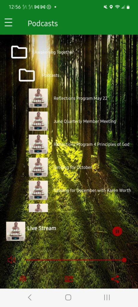 Alternatively, there is a wonderful feature on the Awakening Together Radio App where you can listen to the podcasts 24×7. A lot of these podcasts are updated every 18 days or so, this includes our regular programs that are recorded in the Sanctuary.