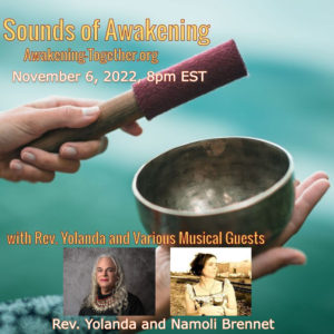 Rev. Yolanda singer/songwriter/performance artist & interfaith minister, originally from Muscle Shoals, Alabama- The Hit Recording Capital of the World. She has been making music professionally for over 35 years, winning the NYC MAC Award twice and being inducted into both the NY Blues Hall of Fame and The GLBT Hall of Fame. Rev. Yolanda and her husband Rev. Glen Ganaway are the founders of the “spiritual happening” called Church With A 2 Drink Minimum. Rev. Yolanda is also a founding member of the NYC-based organization, Drag Story Hour NYC . Her most recent projects during the Pandemic years are Sounds of Awakening-an inspirational music program hosted by Awakening-Together.org, “YolandaNanda” a cd, based on her love for mantras of the Buddhist, Hindu, and Sikh traditions, and Alien Love Child Musical, an autobiographical “musical concept EP”. See and hear more: www.Yolanda.net/audio